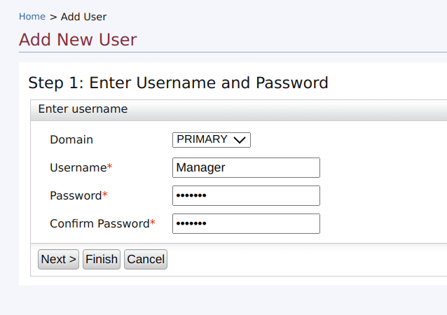 adminPortalManagerand assign it to the user. Click Finish to complete.