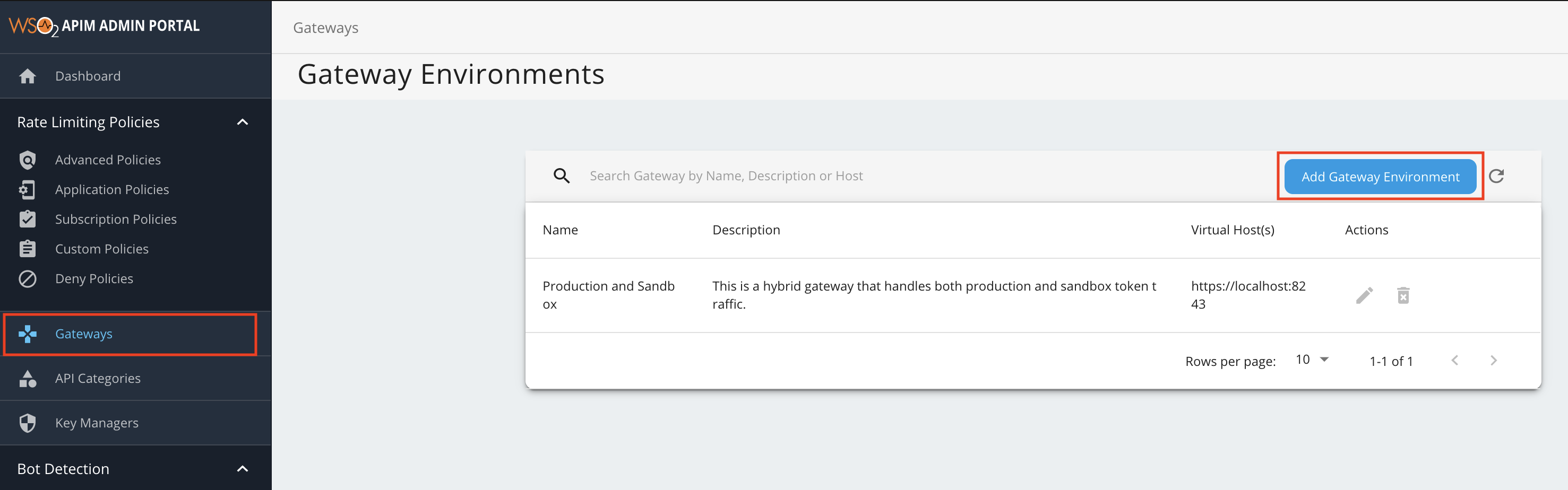 Option 1: Create a Gateway environment via the Admin Portal¶