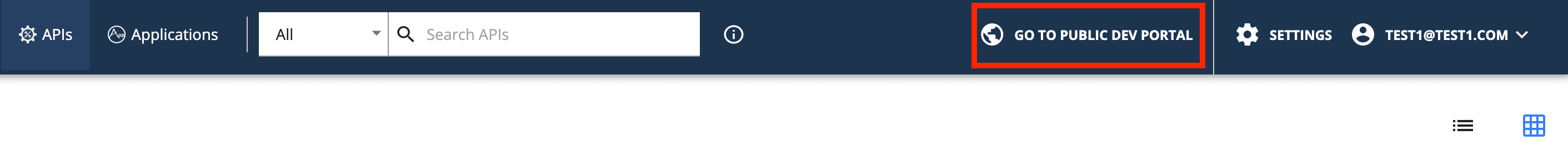 Click the Go To Public Developer Portal option available in the Navigation bar, go to the