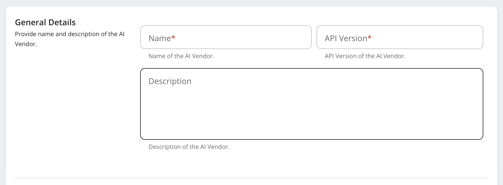 Step 2 - Provide the AI Service Provider Name and Version.¶