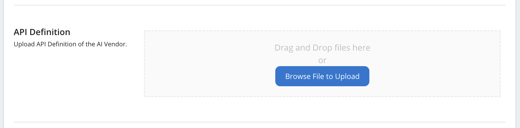 Upload the OpenAPI specification file provided by the custom AI service provider. This step defines the API endpoints and operations that the service provider offers.