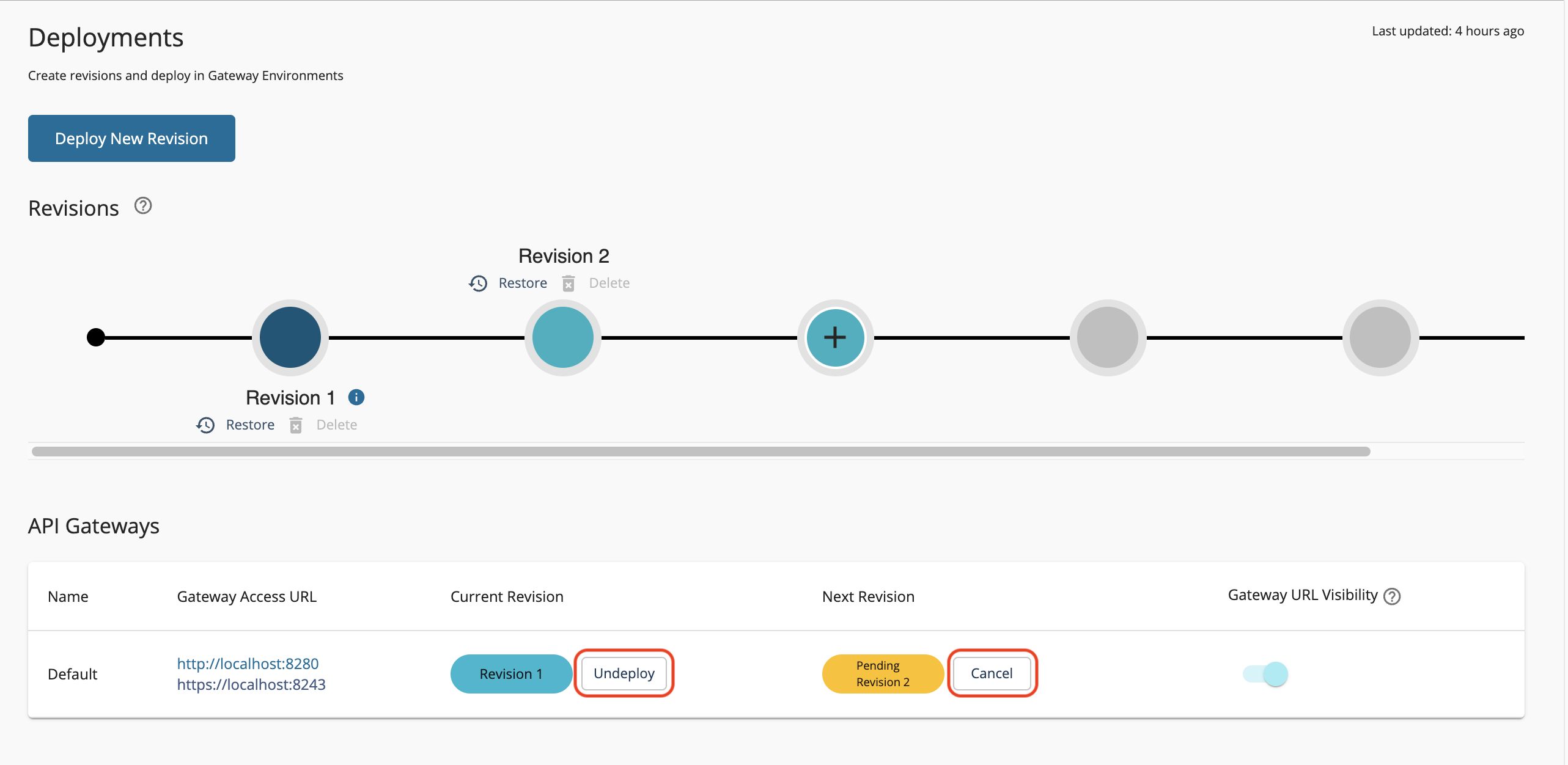 You can send a new pending request even while a deployment to a specific gateway is in progress. The current revision will not be undeployed until the new request is approved. As mentioned earlier, you have the option to either cancel the second pending request or undeploy the current revision at your discretion.