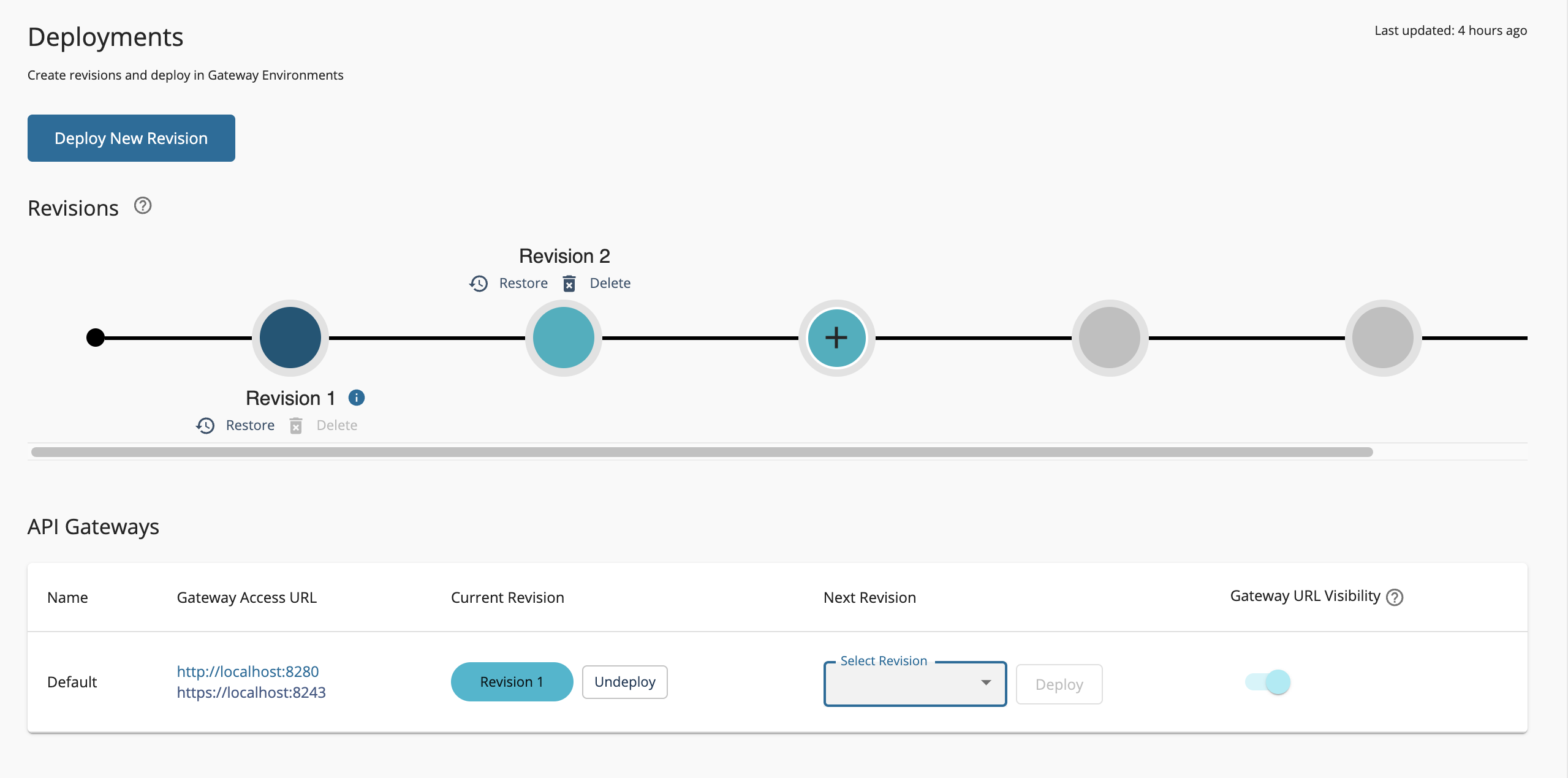 Note that when clicking the Deploy New Revision button, a gateway with a pending request will be disabled for selection until the workflow task is completed or deleted.