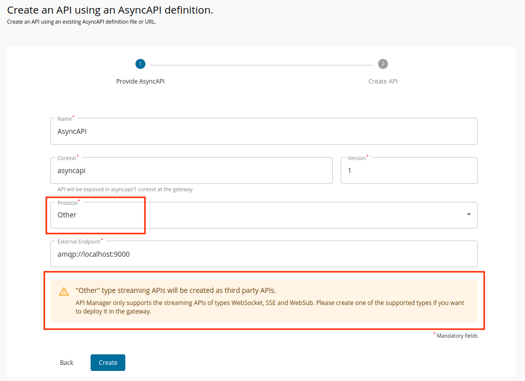 In addition to the streaming APIs supported in API Manager (WebSocket, SSE, and WebSub) the Other option provided when importing API definitions can be used to import a third-party API.