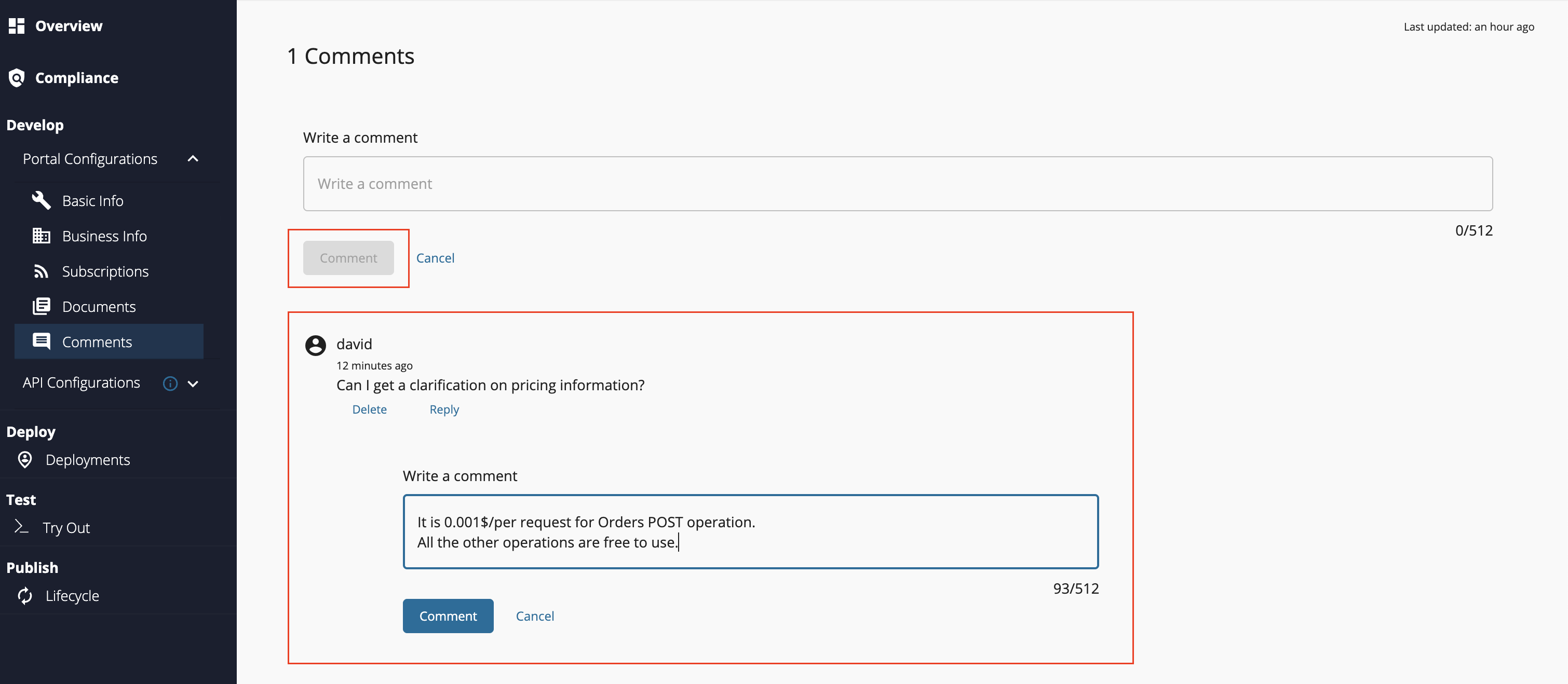 Comment on an API via the Publisher¶