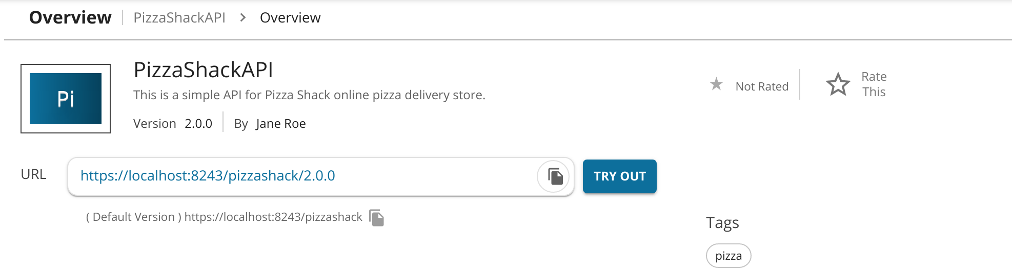 If you mark any version of an API as the default, two API URLs are listed in its Overview tab in the Developer Portal. One URL appears with the version and the other URL appears without the version. You can invoke the default version of an API using either one of the latter mentioned URLs.