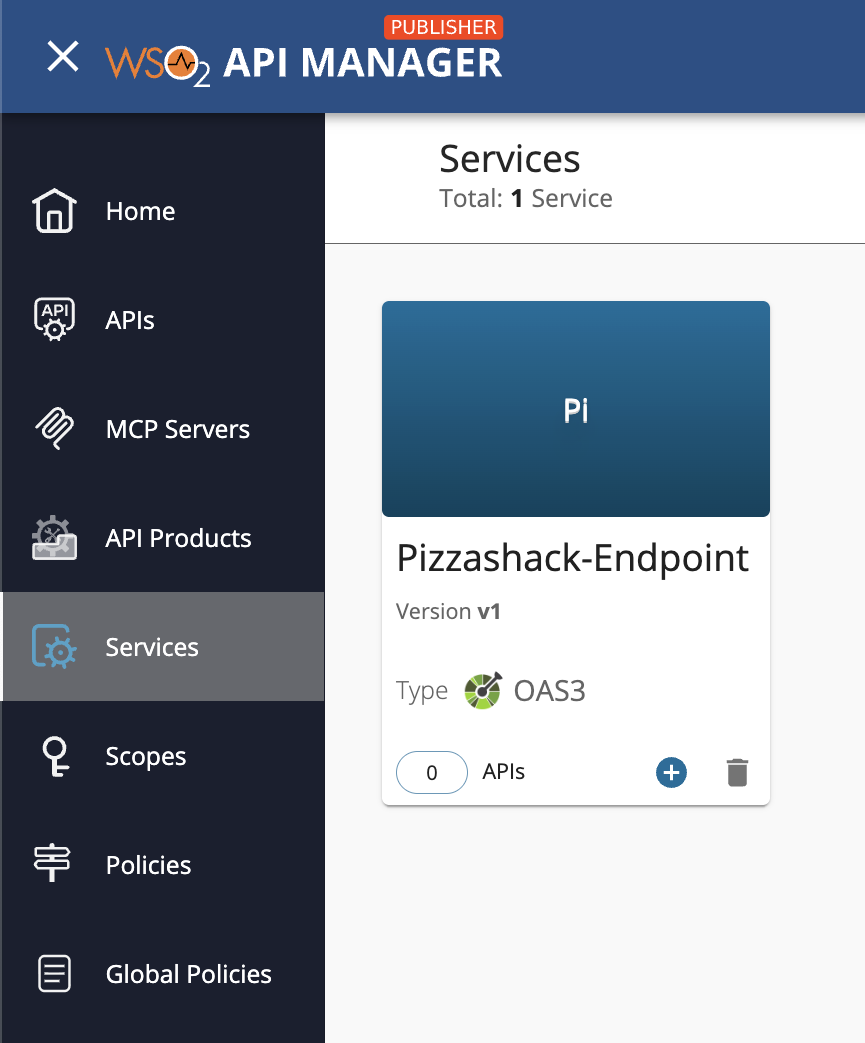 The service catalog in WSO2 API Manager contains services that correspond to either the Micro Integrator or the Streaming Integrator. The Micro Integrator services correspond to the REST API backend services, and the Streaming Integrator services correspond to the Streaming API (i.e., WebSocket, WebHook/WebSub or SSE) backend services that are managed by the respective integration layer (Micro Integrator or Streaming Integrator).