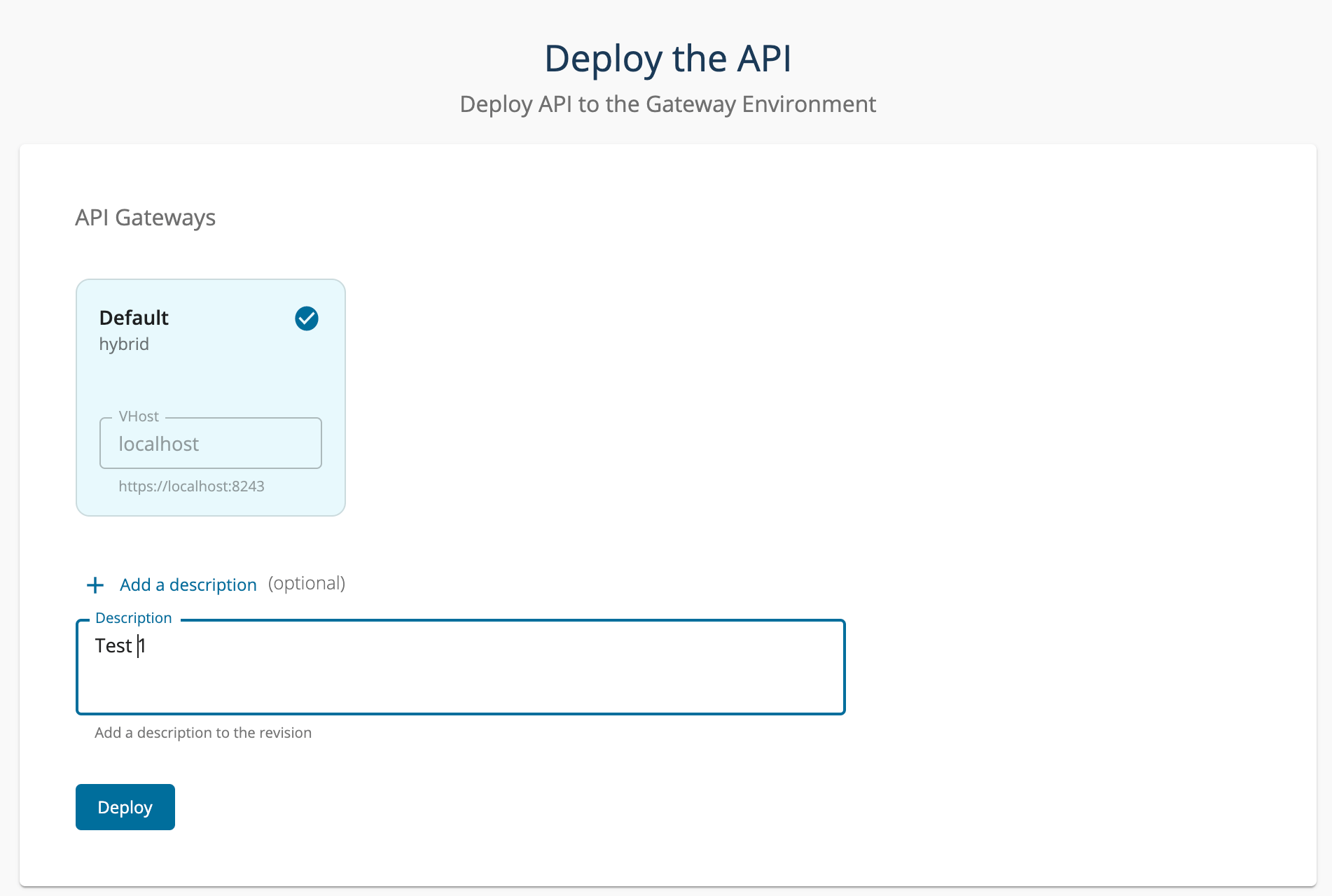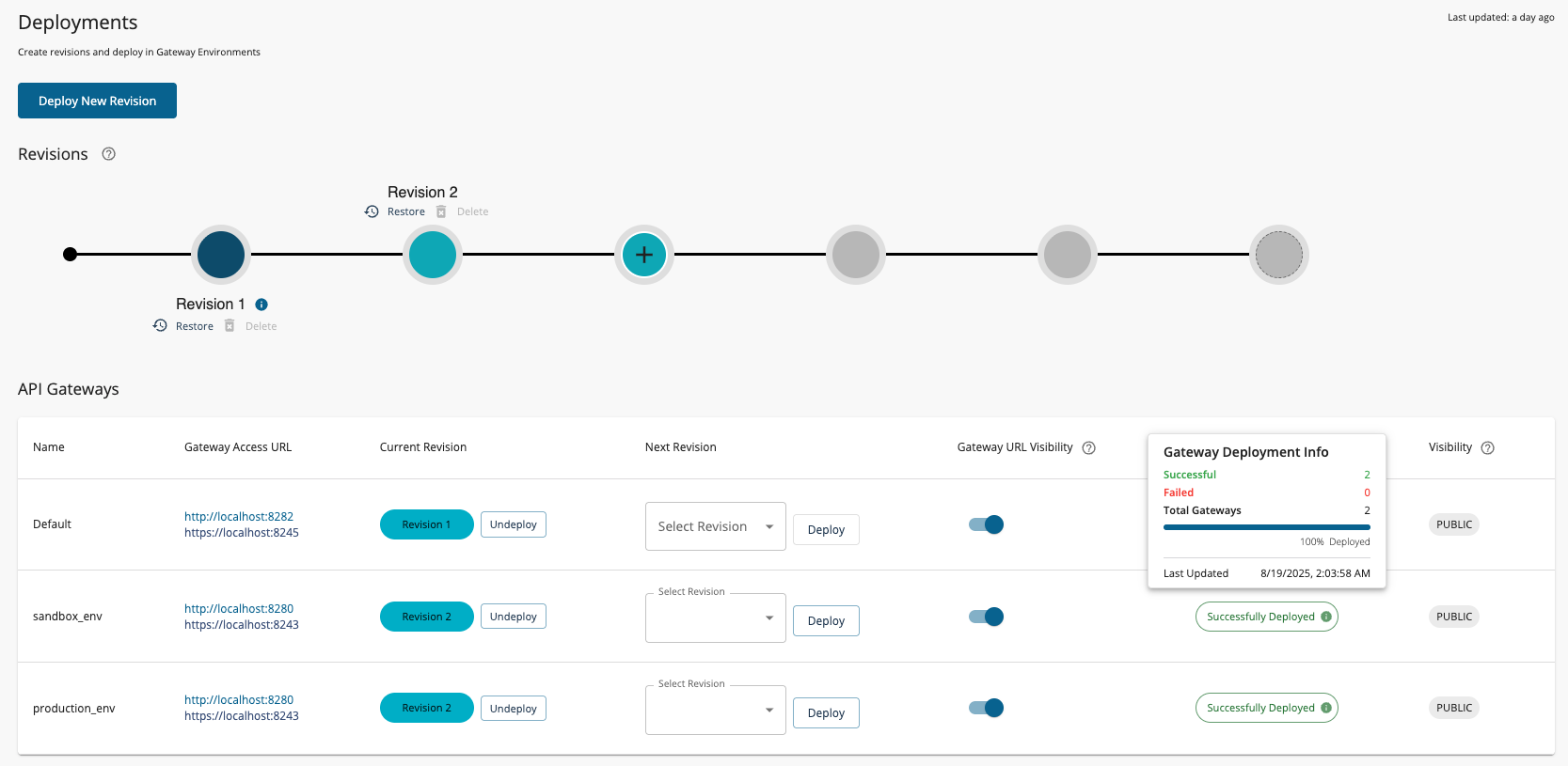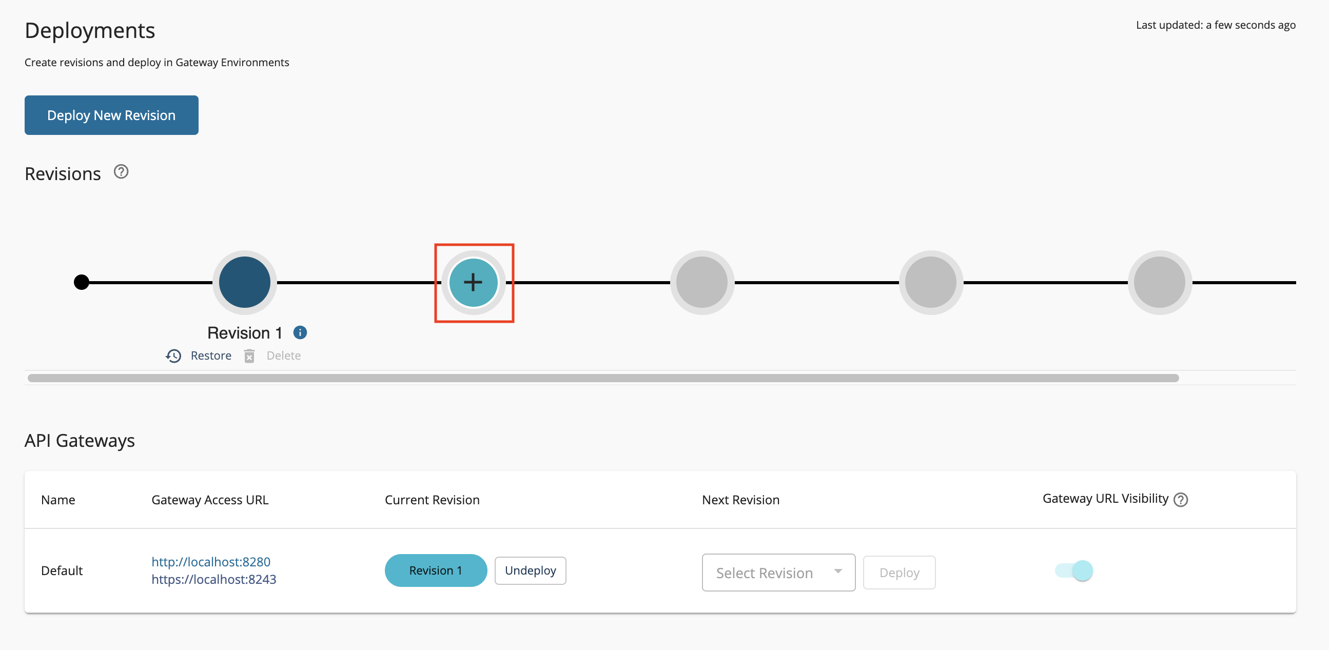 Follow the instructions below to either deploy a new revision or deploy an existing revision in a given Gateway Environment: