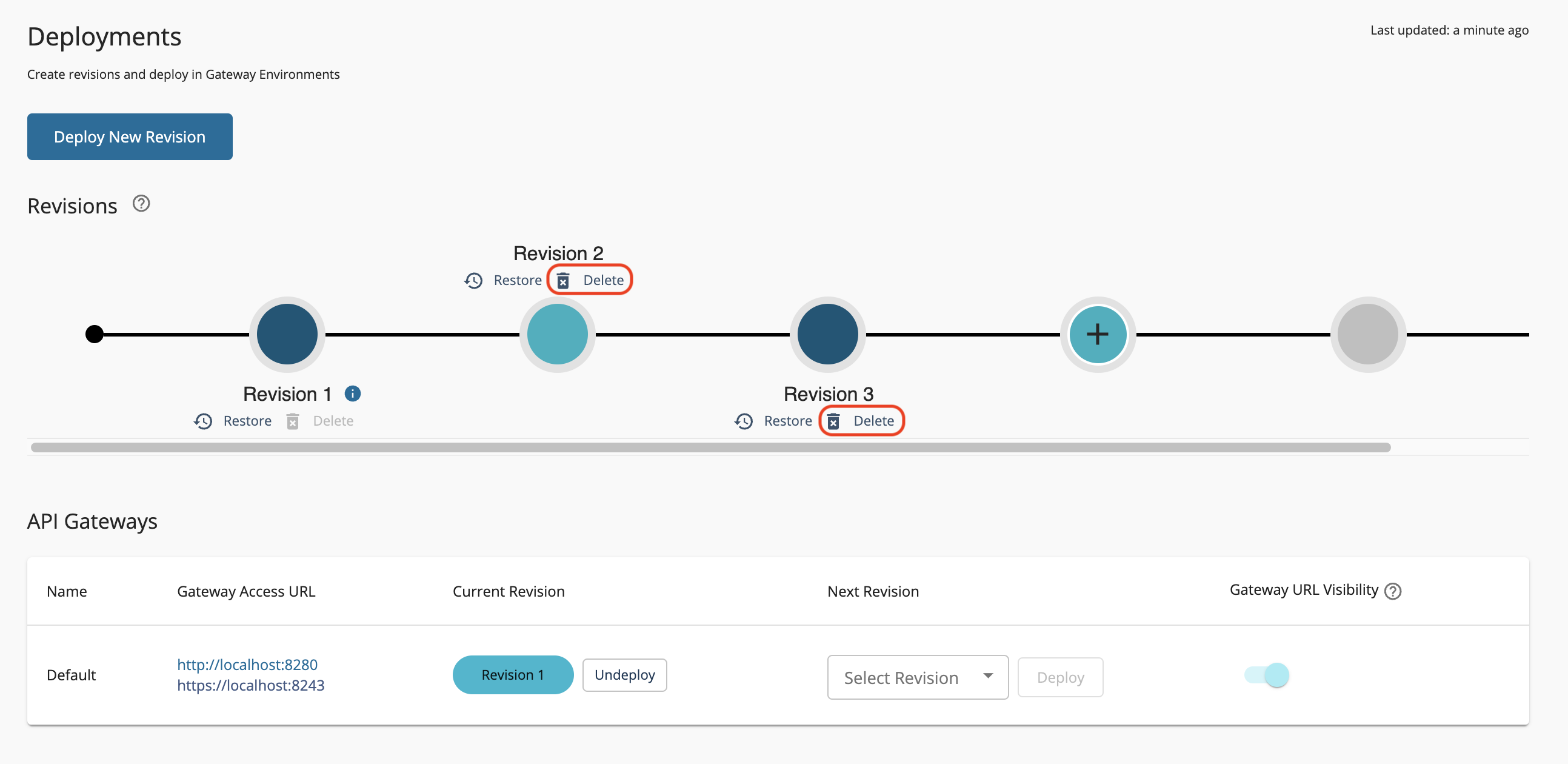 - If a revision is already deployed in a specific environment, you cannot delete it.