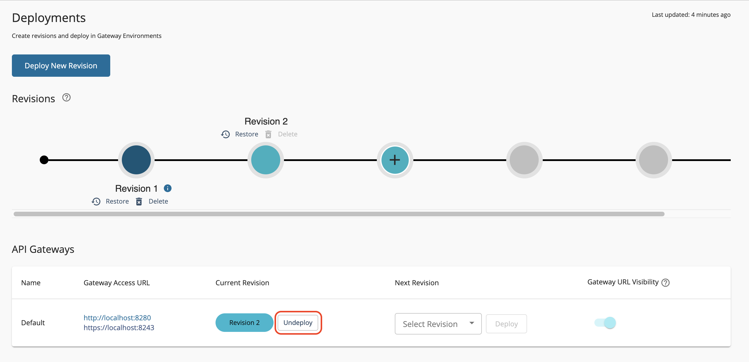 Follow the instructions below if you need to undeploy a revision from a Gateway Environment: