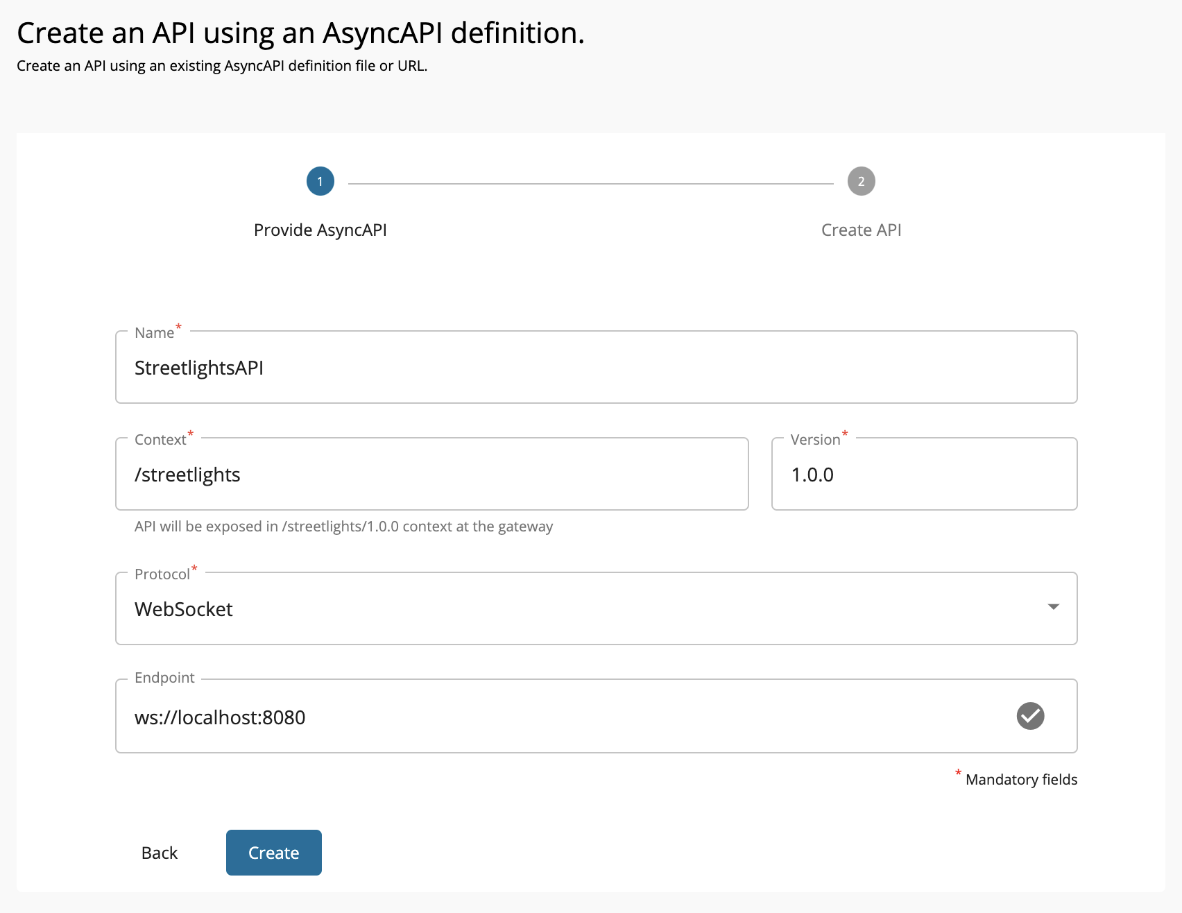 Follow the instructions below to create a Streaming API using an AsyncAPI definition for an existing API:
