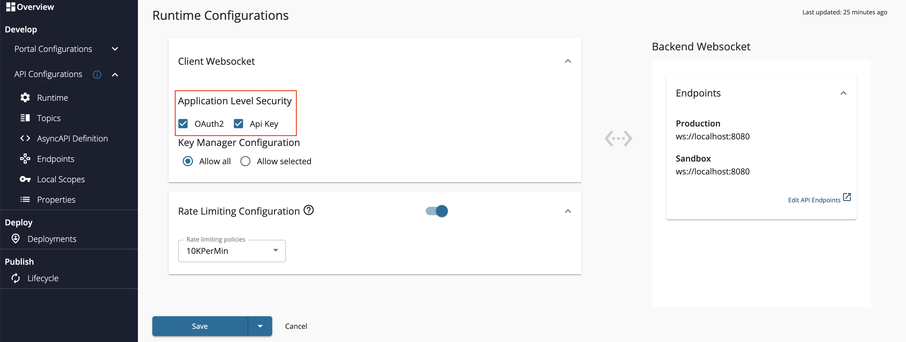 Click Runtime under the API Configurations section, select the required authentication type, and click Save.