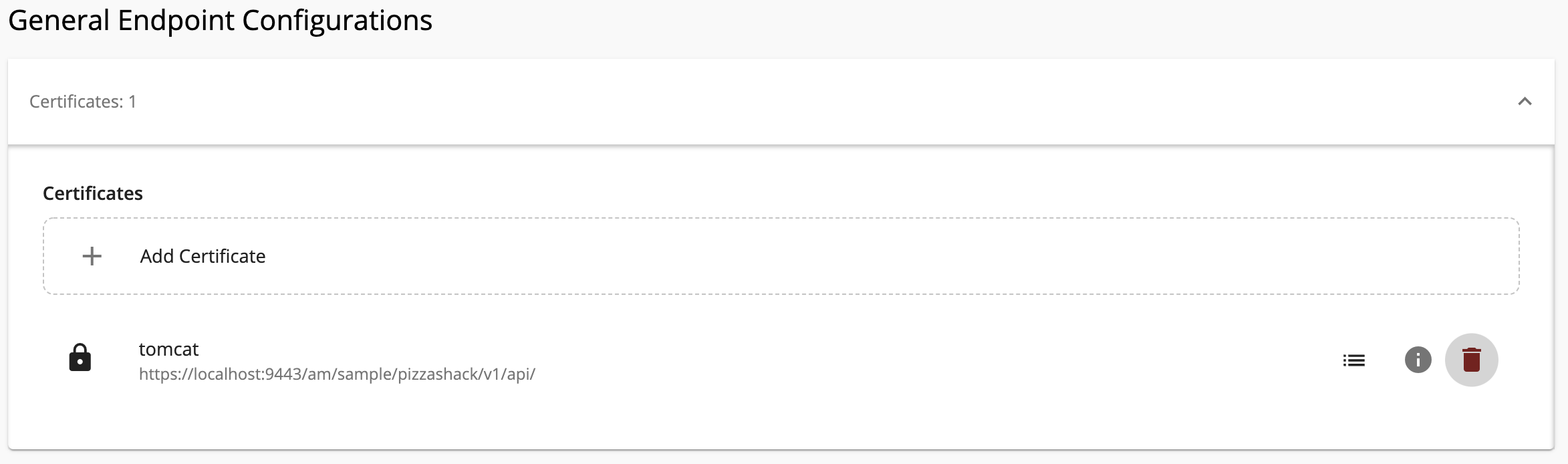 Click on the delete icon that corresponds to the respective certificate to delete a certificate.