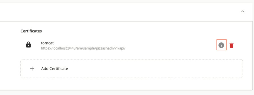 Click on the info icon that corresponds to the respective certificate to view the certificate information.