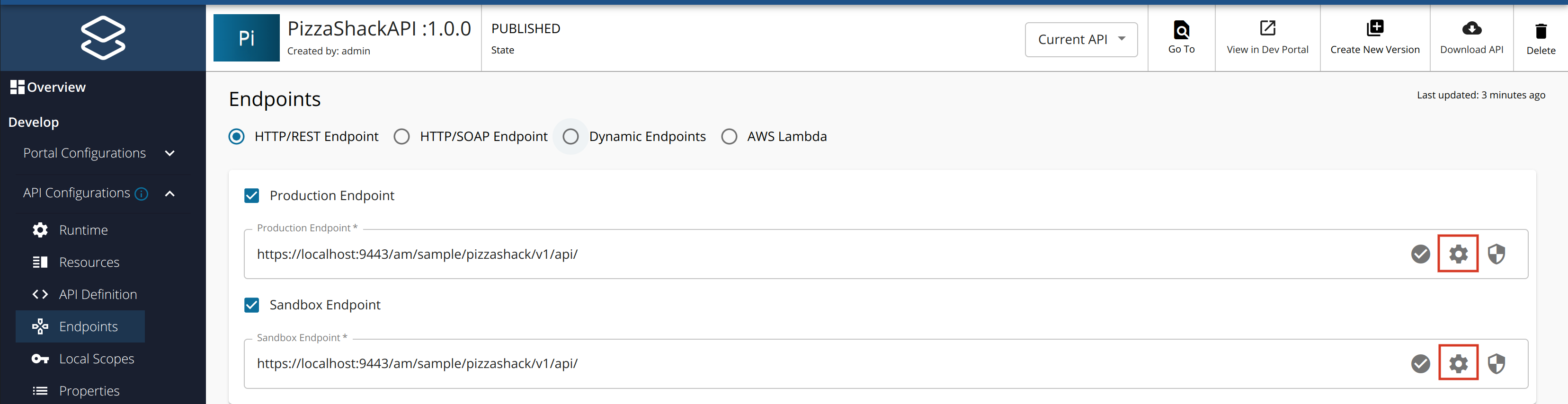 Click on the cogwheel, which is inline with the endpoint that you need to re-configure, and update the endpoint related configurations as required.