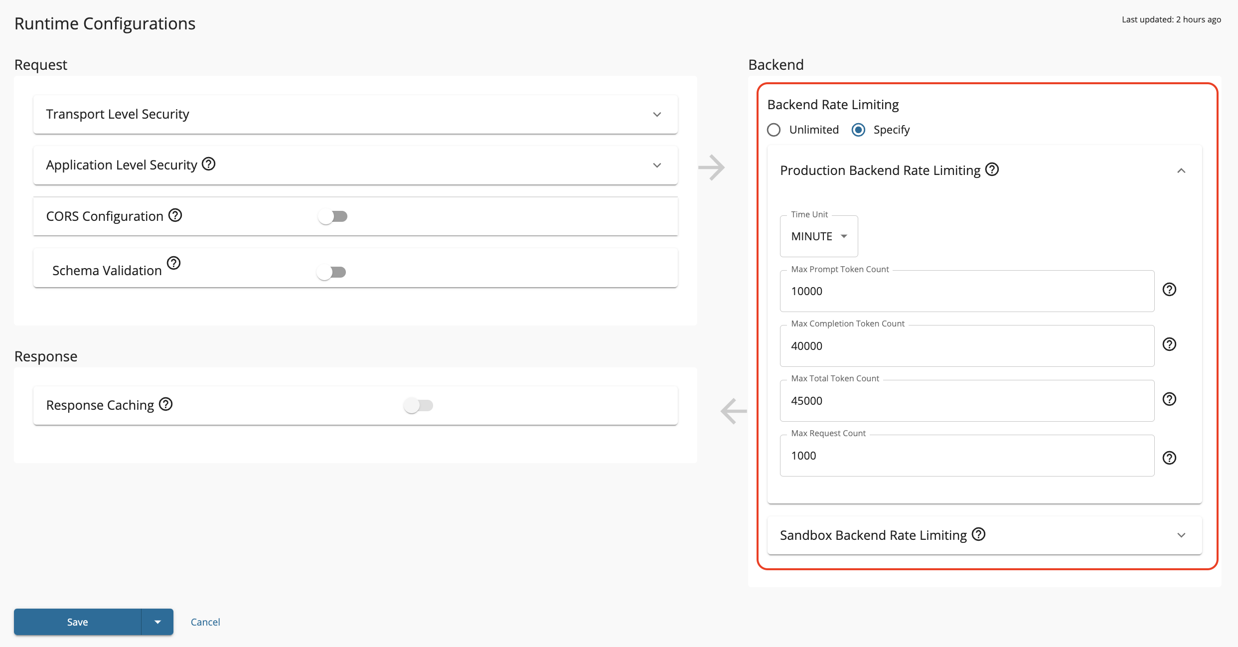 - Configure the token-based limits: