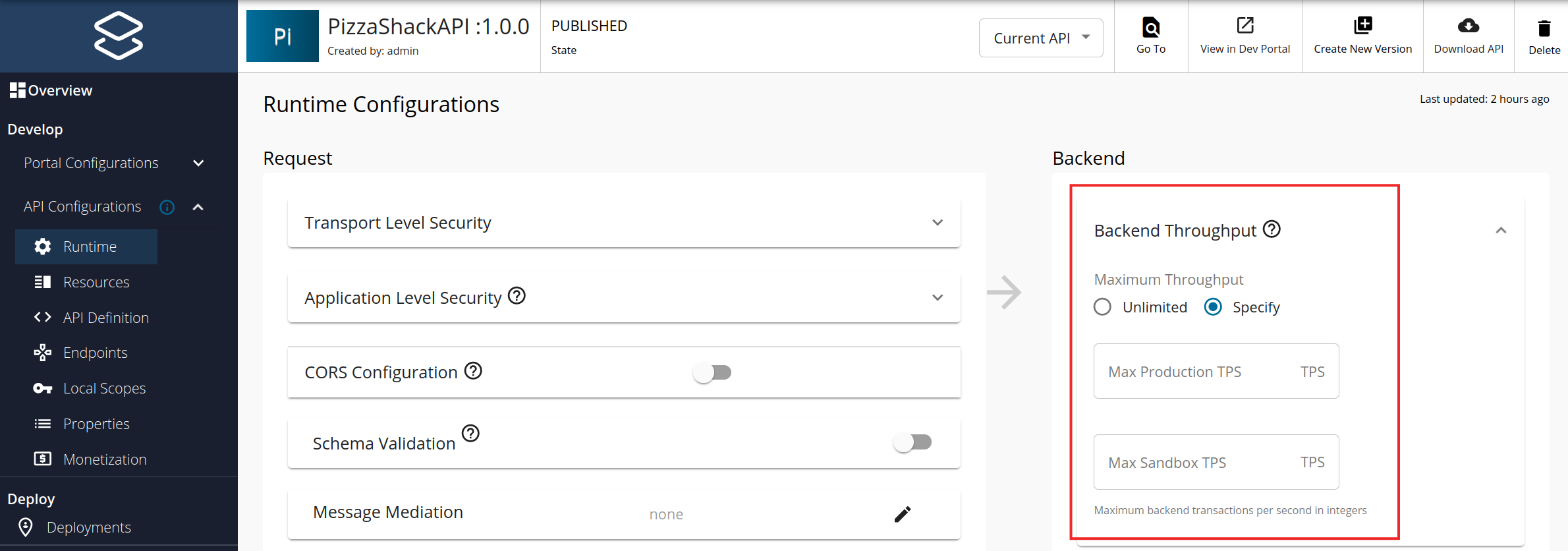 When you expose an API, you create a proxy to your actual backend service. While subscription tiers and advanced rate limiting policies control how applications and users access your API, Maximum Backend Throughput limits protect your backend service itself from being overwhelmed.