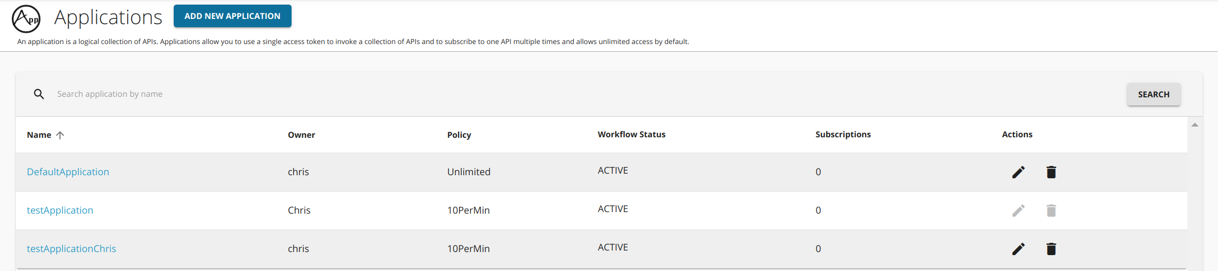 And when Chris signs in to the Developer Portal the application named "testApplication" appears under the application list.