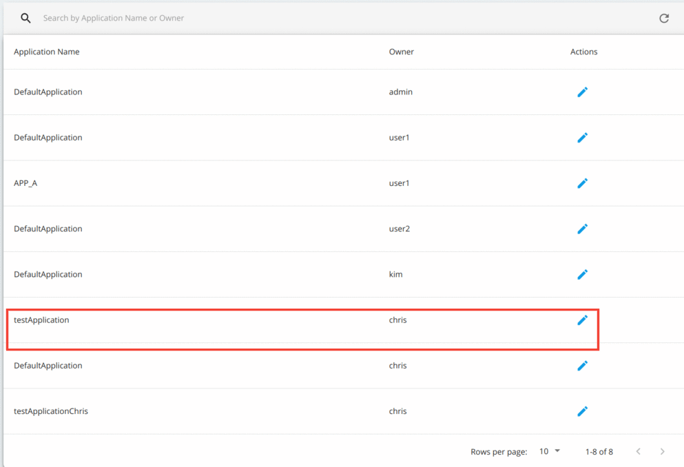 For example, let's consider that Chris and Kim are in the same organization and that Kim owns testApplication and he wants to transfer the ownership of testApplication to Chris.