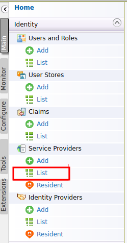 In the Main menu, click Service Providers → List.