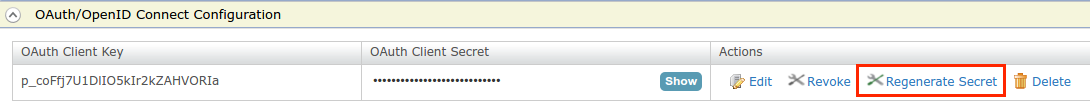 To regenerate the secret of the OAuth Application, click Regenerate Secret.