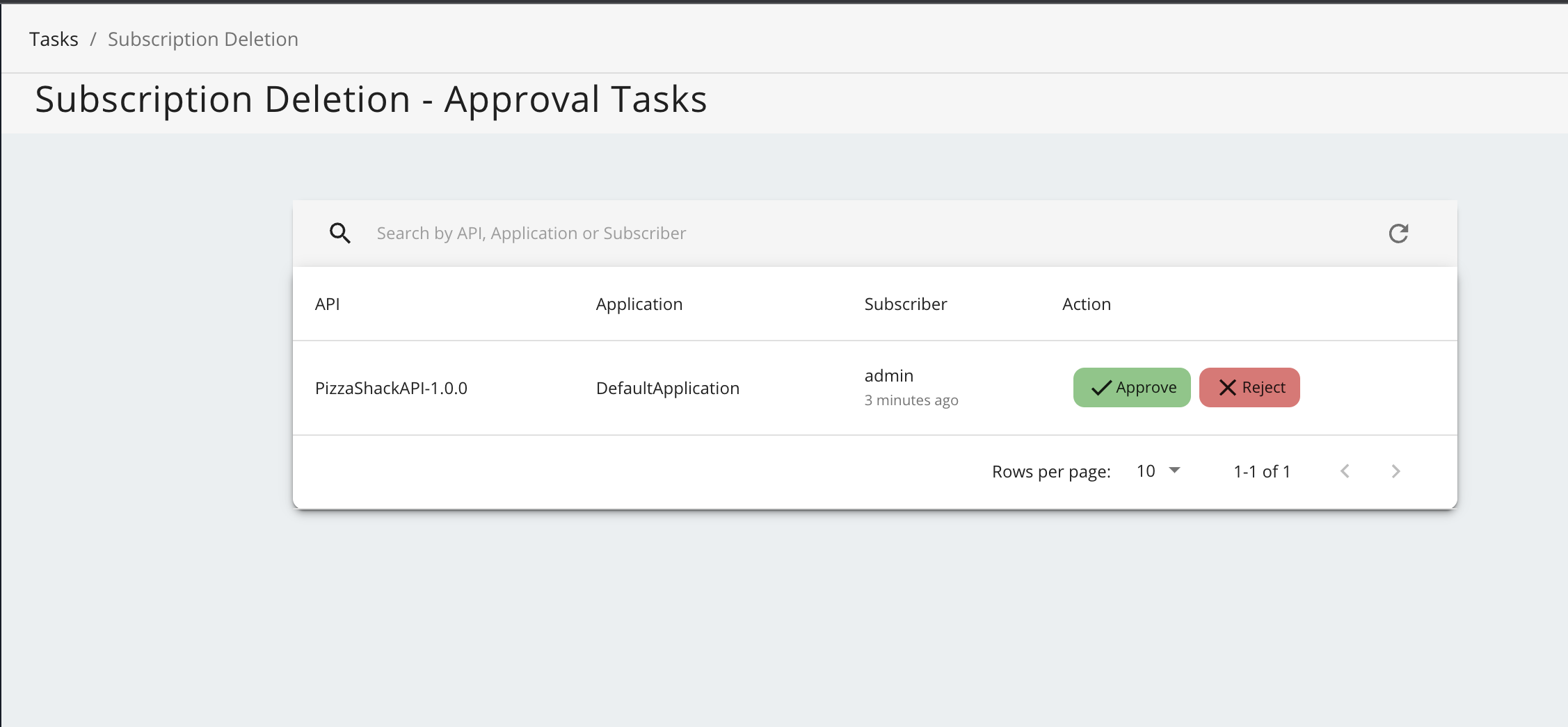 https://<Server Host>:9443/admin), list all the tasks for API subscription delete from Tasks → Subscription Deletion and click on approve (or reject) to approve (or reject) the workflow pending request. -
