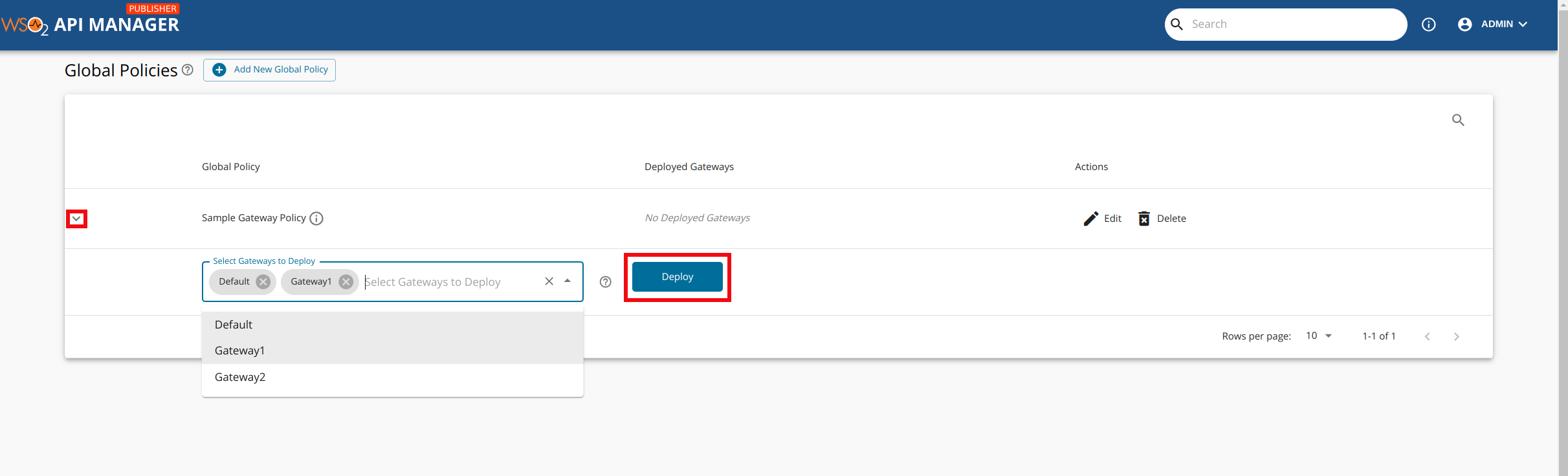 The active global policy deployment on a specific gateway will apply to all the APIs deployed on that gateway. Similarly, this applies to tenants within multi tenanted setup. Global policies will be applied to all APIs belonging to a specific gateway corresponding to the logged-in tenant during the deployment of the global policy.