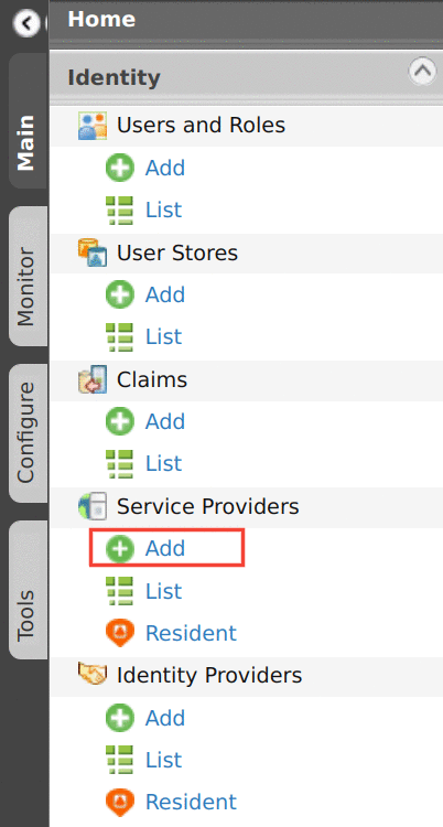 Click Main → Service Providers → Add.