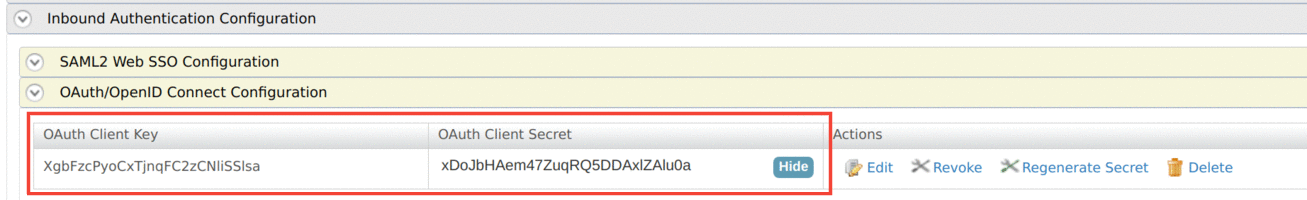 Click Inbound Authentication Configuration → OAuth/OpenID Connect Configuration → Configure to add a new OAuth2 client.