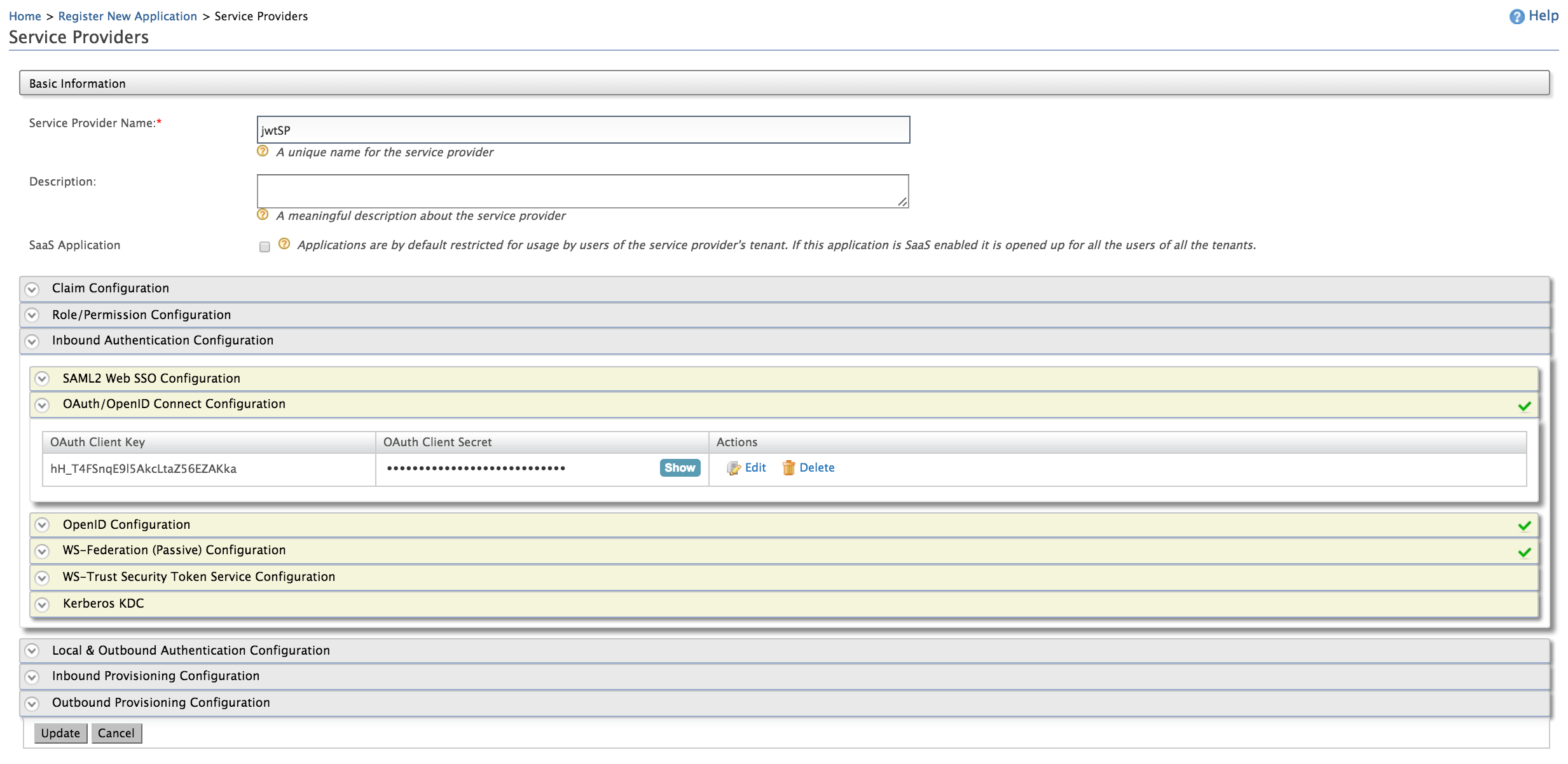 Now you have a registered identity provider and as well as a service provider with an OAuth Client Key and an OAuth Client Secret. In the next section, you can test the JWT grant with the configured setup.