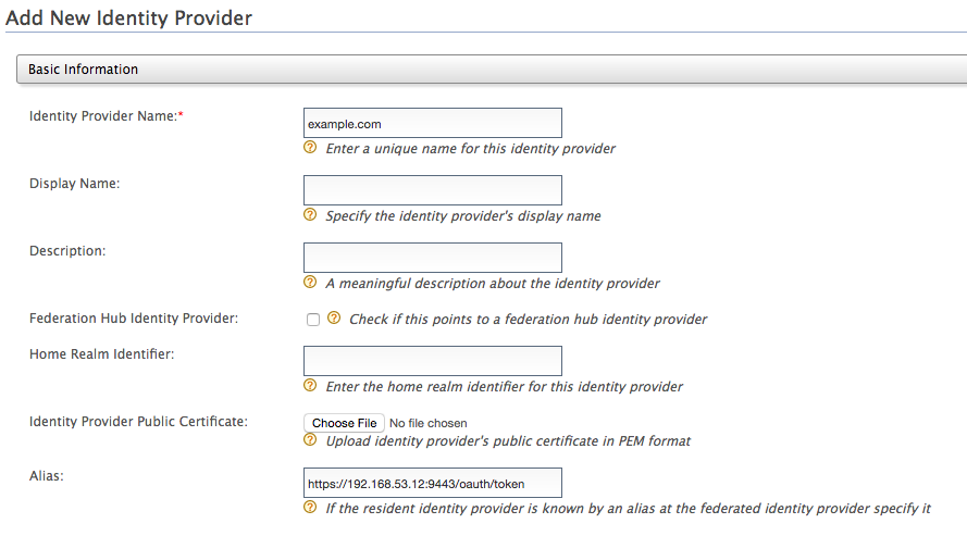 Add a new Identity Provider (IDP). Enter the basic information as follows.
