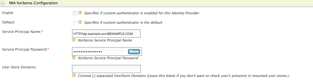 - Server Principal Name : HTTP/idp.example.com@EXAMPLE.COM