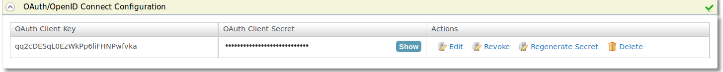- Revoke: Click to revoke (deactivate) the OAuth application. This action revokes all tokens issued for this application. In order to activate the application, you have to regenerate the consumer secret.
