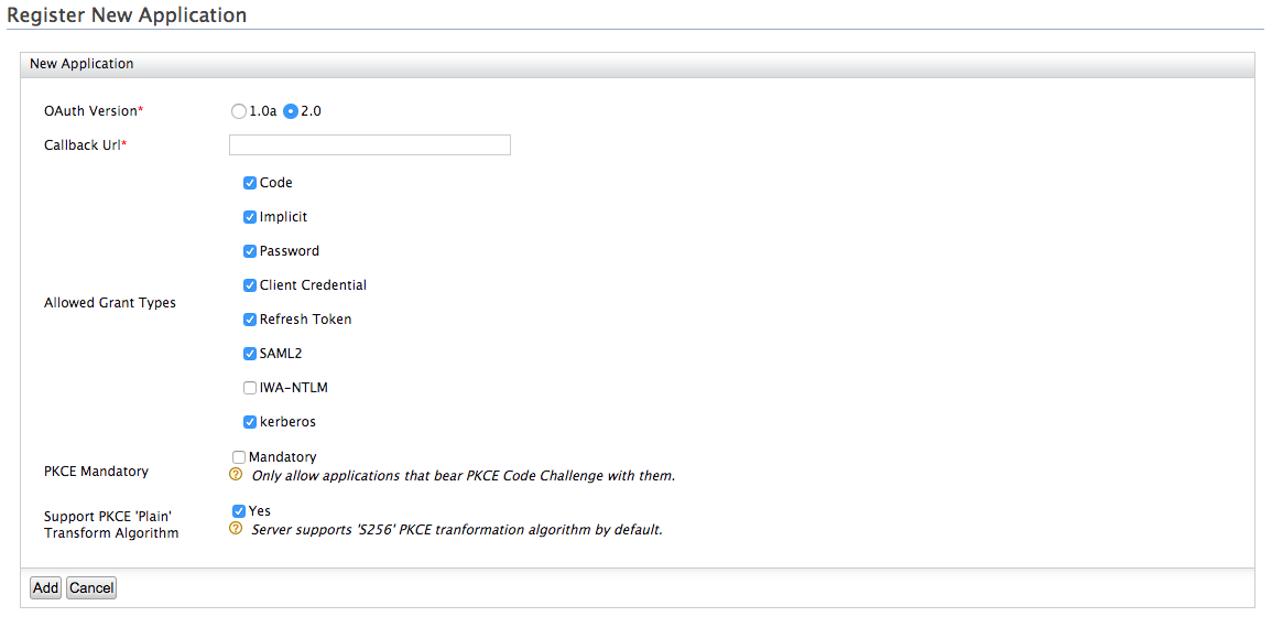 To enable OAuth support for your client application, you must first register your application. Follow the instructions below to add a new OAuth2 application.