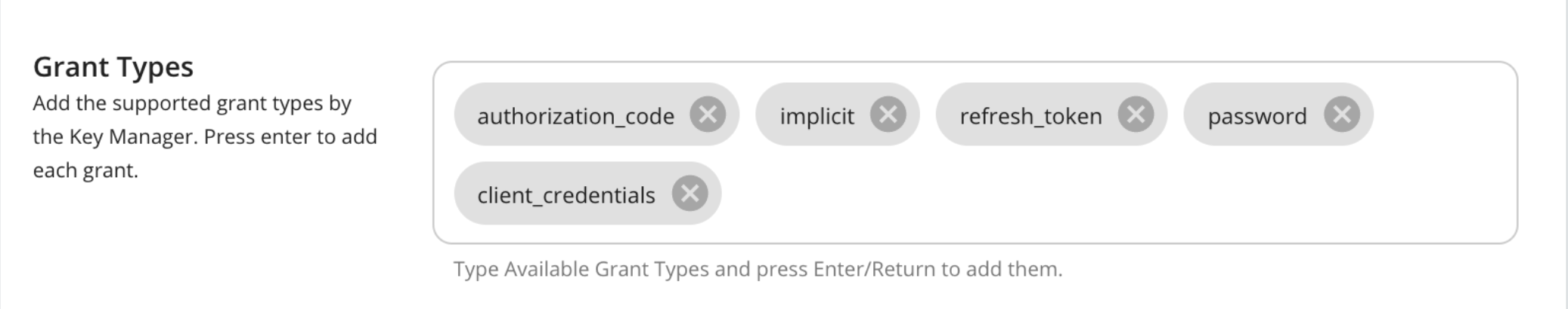 Grant Type - The grant type is the way in which the external Key Manager communicates with API Manager.