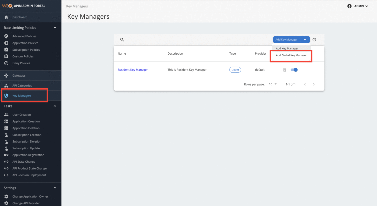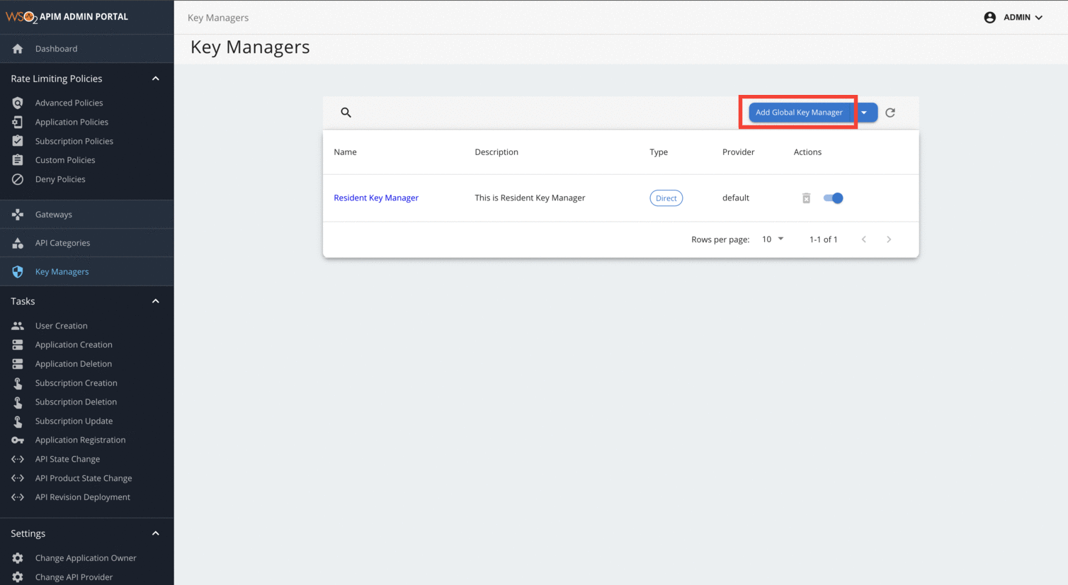 Click the drop-down icon next to the Add Key Manager button and Click Add Global Key Manager from the drop-down
