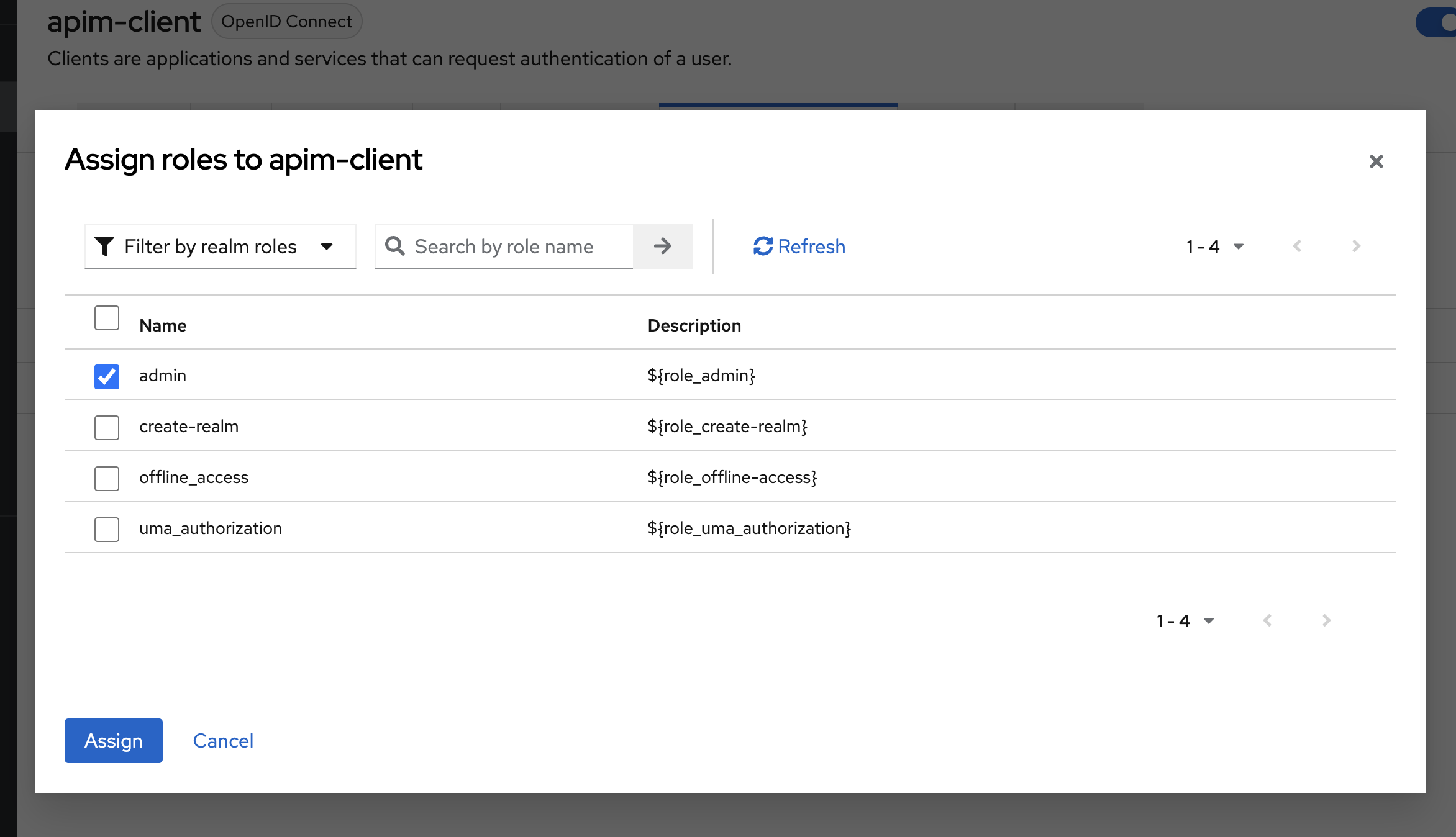 Configuration Description Name The name of the authorization server. Mandatory Display Name A name to display on the UI. Mandatory Description A brief description of the Key Manager. Optional Key Manager Type The type of the Key Manager to be selected. Mandatory Well-known-url The well-known URL of the authorization server (Key Manager). If the well-known URL is provided, other endpoints can be imported. Optional Issuer The issuer that consumes or validates the access tokens e.g., https://localhost:8443/realms/master http://localhost:8080/realm Mandatory Key Manager Endpoints Client Registration Endpoint The endpoint to verify the identity and obtain profile information of the end-user based on the authentication performed by an authorization server. e.g., https://localhost:8443/realms/master/clients-registrations/openid-connect Mandatory Introspection Endpoint The endpoint that allows authorized protected resources to query the authorization server to determine the set of metadata for a given token that was presented to them by an OAuth client. e.g., http://localhost:8080/realms/master/protocol/openid-connect/token/introspect https://localhost:8443/realms/master/protocol/openid-connect/token/introspect Mandatory Token Endpoint The endpoint that issues the access tokens. e.g., http://localhost:8080/realms/master/protocol/openid-connect/token https://localhost:8443/realms/master/protocol/openid-connect/token Mandatory Revoke Endpoint The endpoint that revokes the access tokens. Optional Userinfo Endpoint The endpoint that allows clients to verify the identity of the end-user based on the authentication performed by an authorization server, as well as to obtain basic profile information about the end-user. Optional Authorize Endpoint The endpoint used to obtain an authorization grant from the resource owner via user-agent redirection. Optional Scope Management Endpoint The endpoint used to manage the scopes. Optional Connector Configurations Client ID The client ID obtained in Keycloak for the confidential type client e.g., apim-client. Mandatory Client Secret The client secret obtained in generated from Keycloak for the confidential type client. Mandatory Claim URIs Provide the claim URIs for the consumer key and the scopes. Consumer Key Claim URI The claim URI for the consumer key. Optional Scopes Claim URI The claim URI for scopes. Optional Grant Types The supported grant types. Optional Certificates PEM Either copy and paste the certificate in PEM format or upload the PEM file. Optional JWKS The JSON Web Key Set (JWKS) endpoint is a read-only endpoint. This URL returns Keycloak's public key set in JSON web key set format. This contains the signing key(s) the Relying Party (RP) uses to validate signatures from Keycloak. Optional Permissions Key Manager Permission Permission type for role-based Key Manager restriction. e.g., PUBLIC,ALLOW,DENYOptional Roles Roles to Whitelist or Blacklist Optional Advanced Configurations Token Generation Token Generation Enables token generation via the authorization server. Optional Out Of Band Provisioning This enables the provisioning of Auth clients that have been created without the use of the Developer Portal, such as previously created Auth clients. Optional Oauth App Creation This enables the creation of Auth clients. Optional Token Validation Method The method used to validate the JWT signature. Self Validate JWT The kid value is used to validate the JWT token signature. If the kid value is not present, gateway_certificate_aliasis used.Optional Use introspect The JWKS endpoint is used to validate the JWT token signature. If this option is used to validate the tokens it is mandatory to add a Token Handling Option. For the Okta it should be JWT and it is required to specify a claim mapping as a unique identifier. e.g.,; Claim Key : iss Claim Value : https://localhost:8443/realms/master Optional Token Handling Options Provides a way to validate the token for this particular authorization server. This is mandatory if the Token Validation Method is introspect REFERENCE The tokens matching a specific regular expression (regEx) is validated. Optional JWT The tokens matching a specific JWT is validated. Optional CUSTOM The token matching a custom pattern is validated. Optional Claim Mappings Local and remote claim mapping. Optional