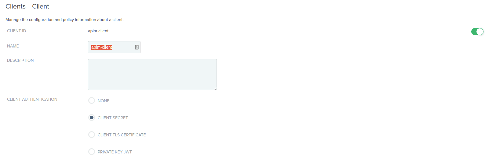 CLIENT ID apim-client ALLOWED GRANT TYPES Access Token Validation (Client is a Resource Server) -