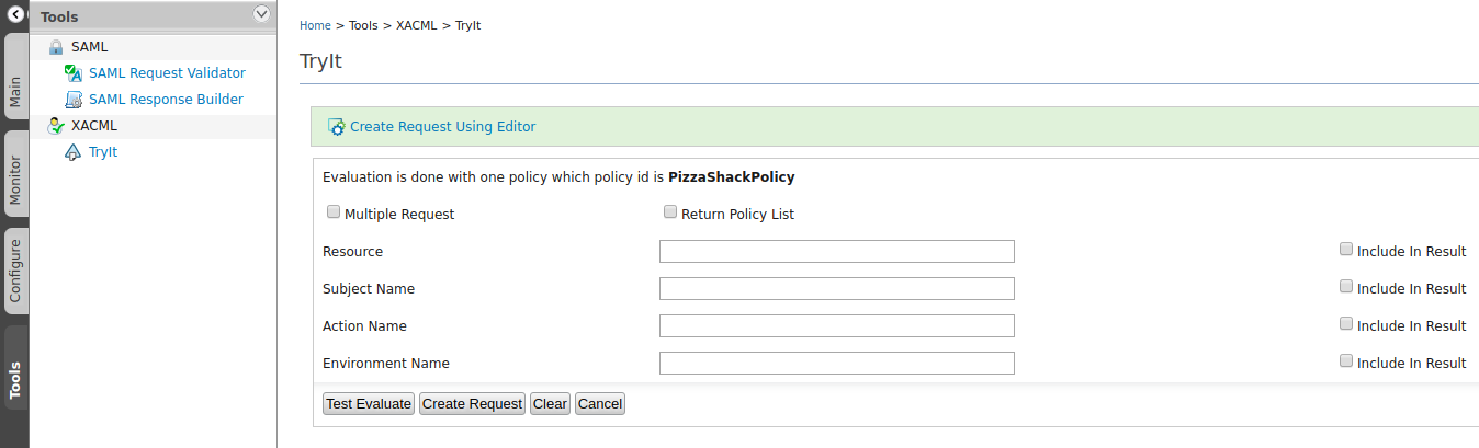 You need to enter your username as the Subject Name . Refer Evaluating a XACML Policy for more information on how to use the TryIt tool for XACML Policy evaluation. For example, try