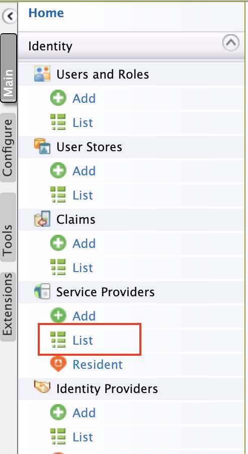 Click Main and then click Add under Identity Providers.