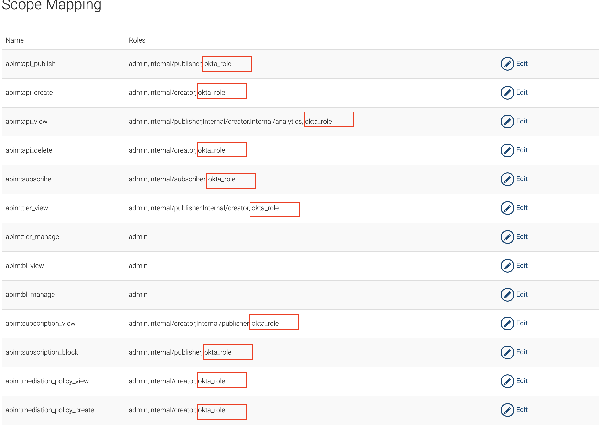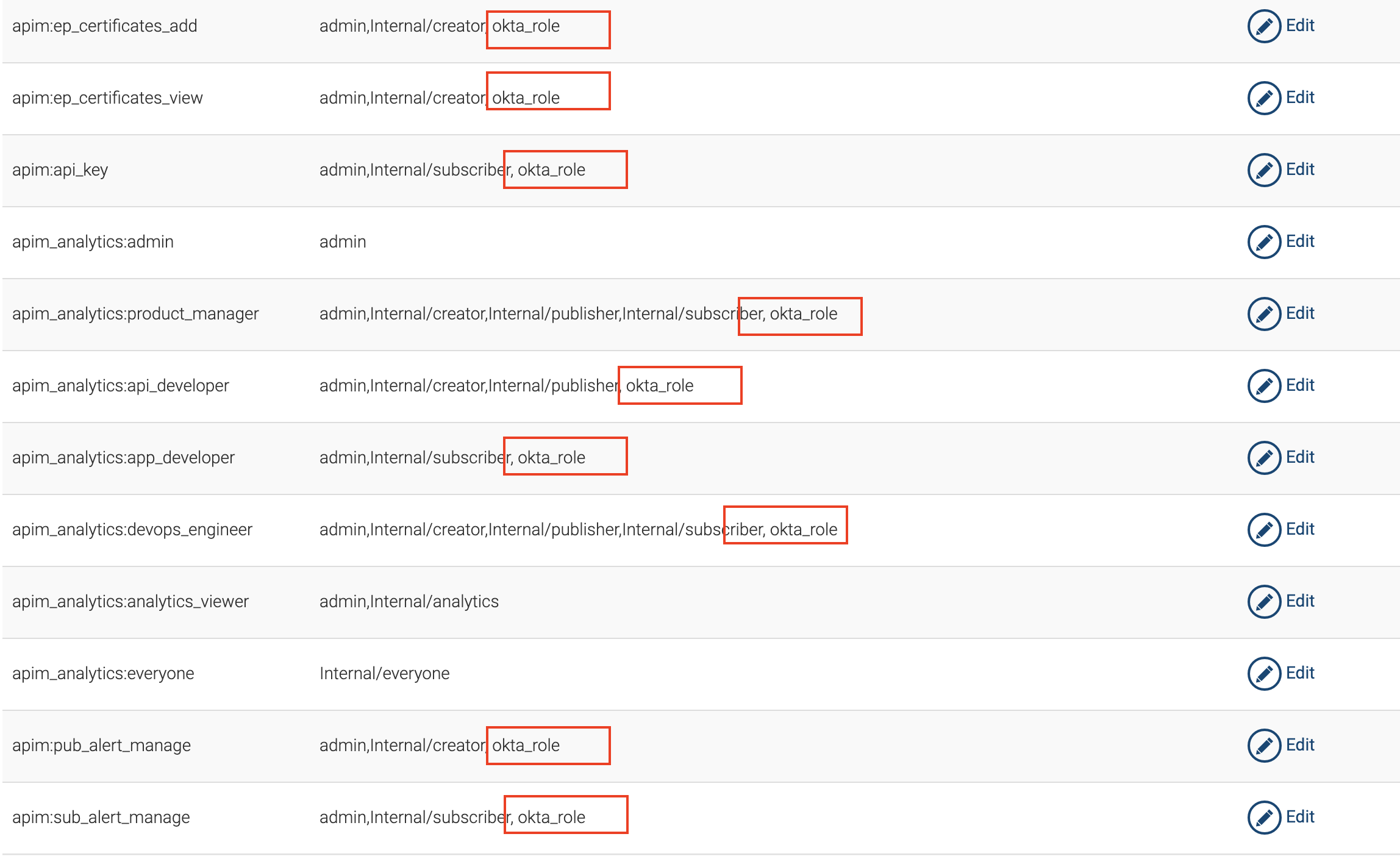 apim_publisherandapim_devportal. Click Edit forapim_publisher.Warning