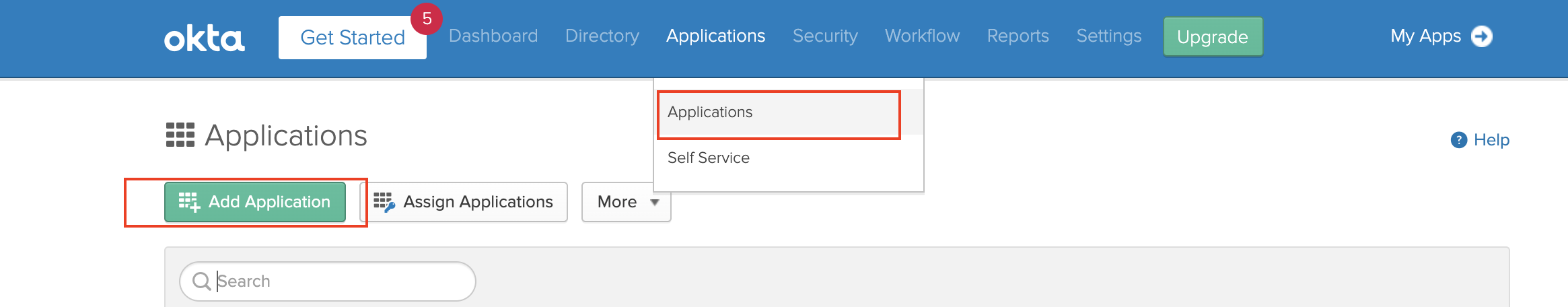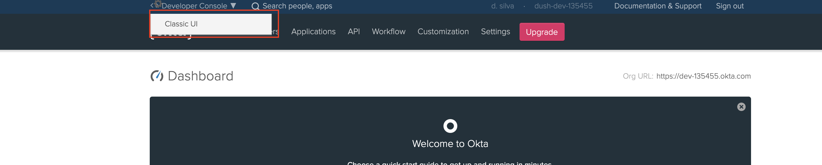 Login to the Okta developer console and switch to the classic UI.