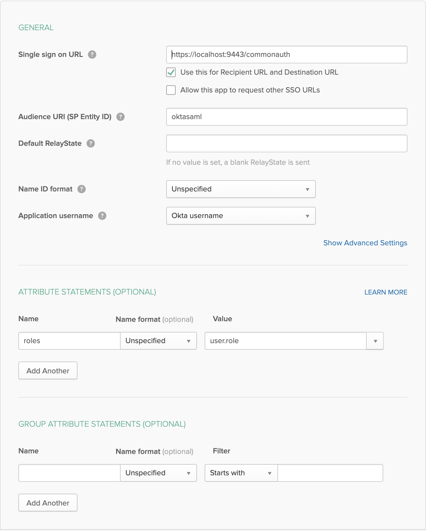 roledrop-down menu contains the roles you configured in Okta (Step 1). Select theIdentity Provider Claim URIsaccording to the configurations in the Okta Developer Console in Step 1. -
