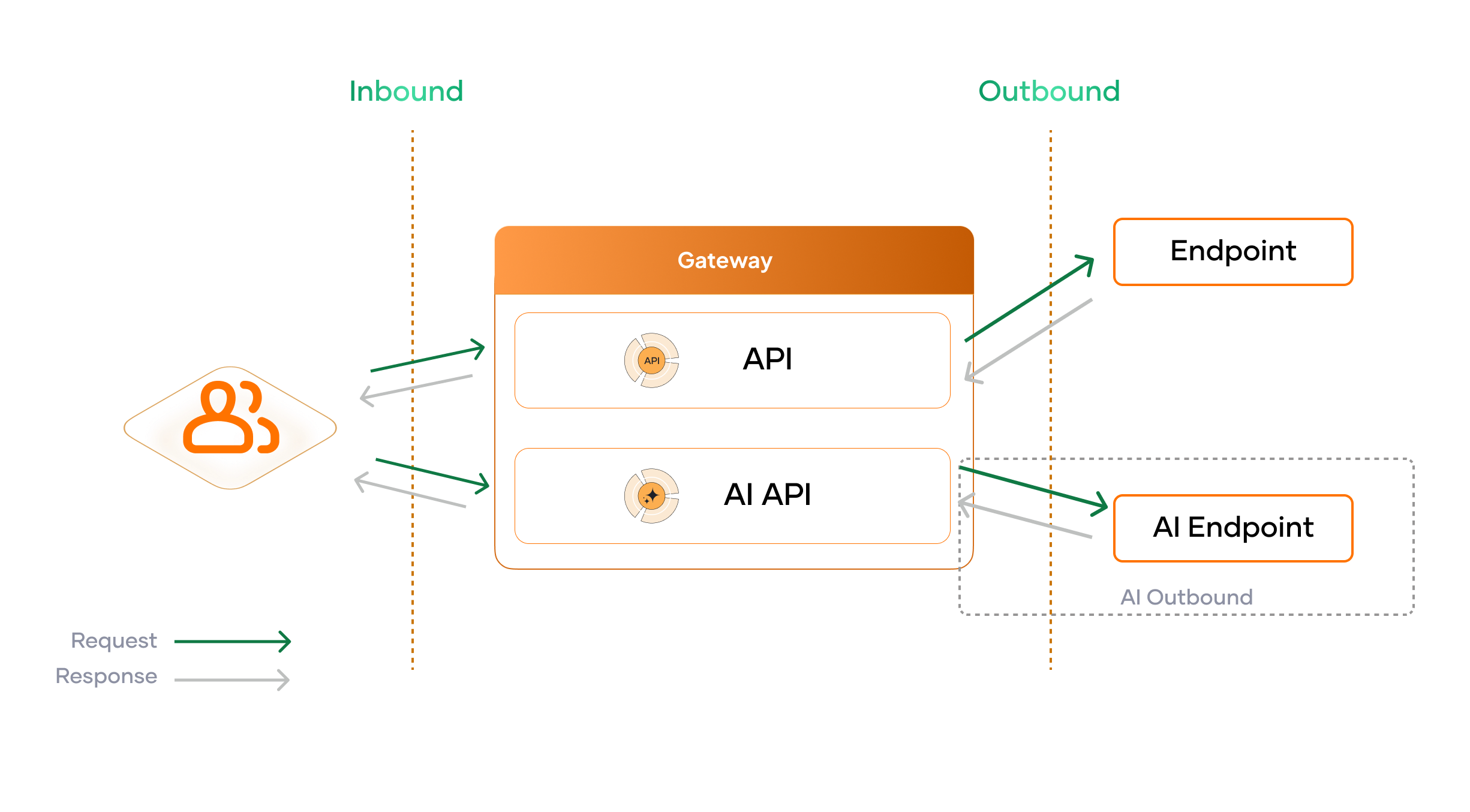 As the above diagram shows, Inbound Analytics consists of analytics data that are collected between the user and API Proxy. This includes apiContext, proxyResponseCode, proxyResponseCode, apiType etc.