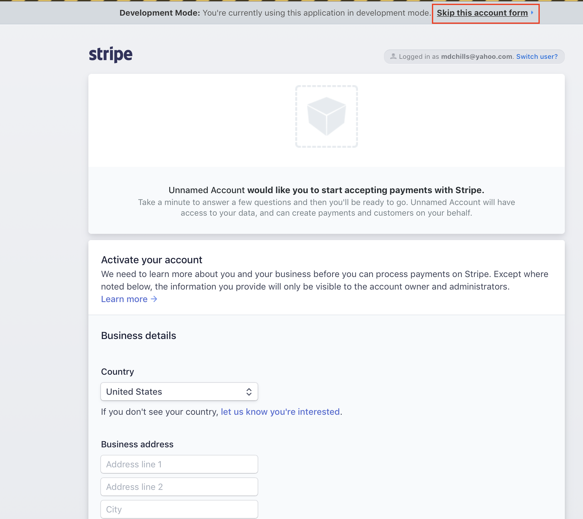 - Create the following two Stripe accounts only if you do not have an existing Stripe account.