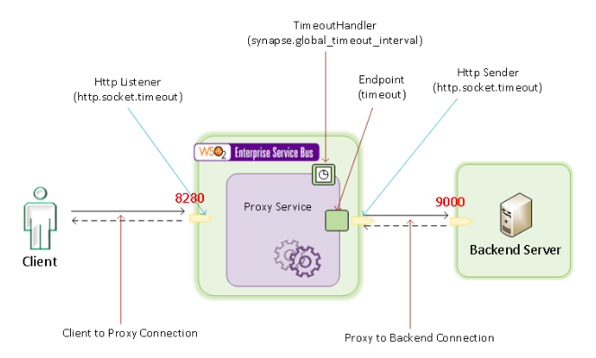 Global timeout value for endpoints. Can be overwritten by individual endpoint timeout values. Synapse, which is the underlying mediation engine of WSO2 Micro Integrator, is a complete asynchronous messaging engine that does not block its worker threads on network I/O. Instead, it registers a call-back for a particular request and returns the threads without waiting for a response. When a response is available, the registered call-back is used to correlate it with the relevant request so that further processing can be done. If you have configured a timeout value at the endpoint level, the global timeout value is not taken into consideration for that endpoint. For all the other endpoints that do not have a timeout value configured, the global value is considered as the timeout value. You can configure the |