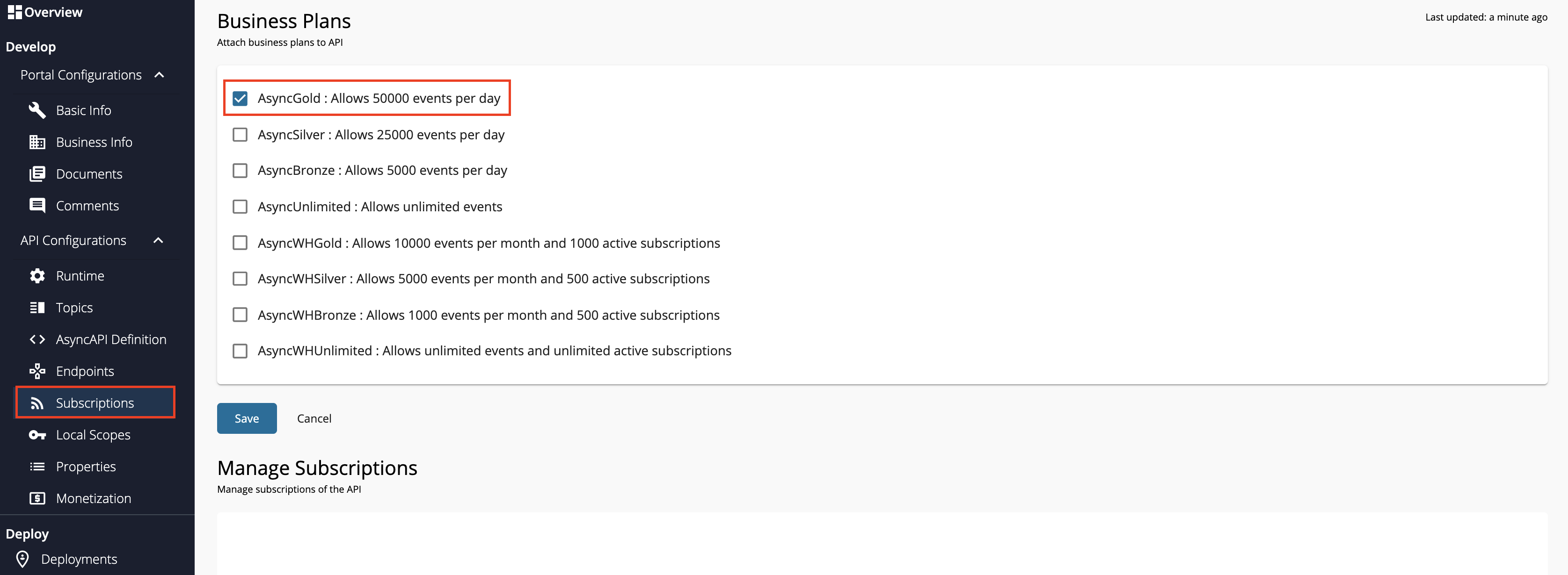 Attach business plans to the SSE API.